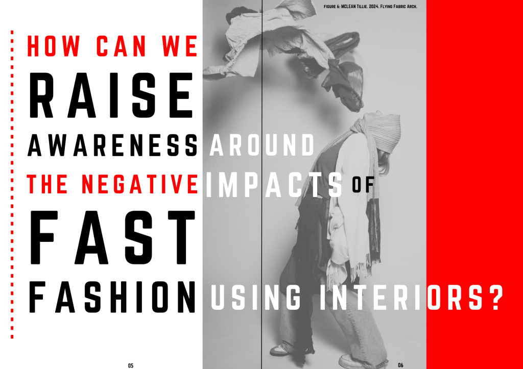 How can we raise awareness around the negative impacts of fast fashion using interiors?
