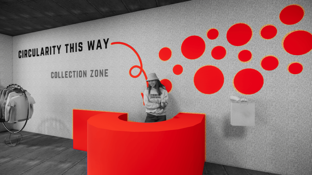 An interior dedicated to the education on the negative impacts of fast fashion by encouraging circularity…